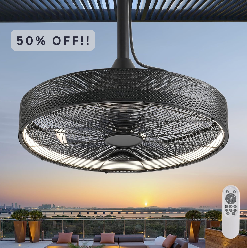 🌬️GENIUS!💡 Keep your patio or gazebo cool and bright with this plug-in outdoor ceiling fan featuring remote control, 6 speeds, and 3-color dimmable lighting! Dropping at check out!! ad