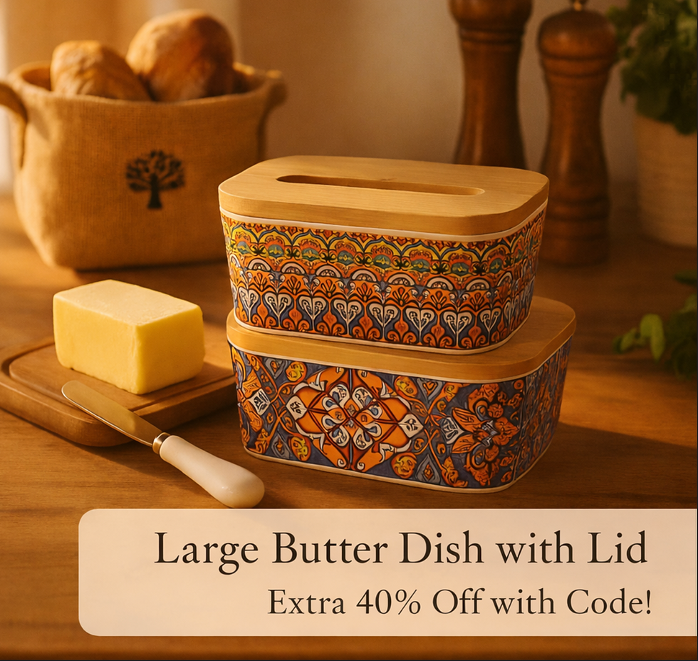 A ceramic butter dish with a lid that keeps your butter fresh and your counter looking like it belongs in a magazine. So pretty! and Soft butter on demand!! Dropping at check out! ad