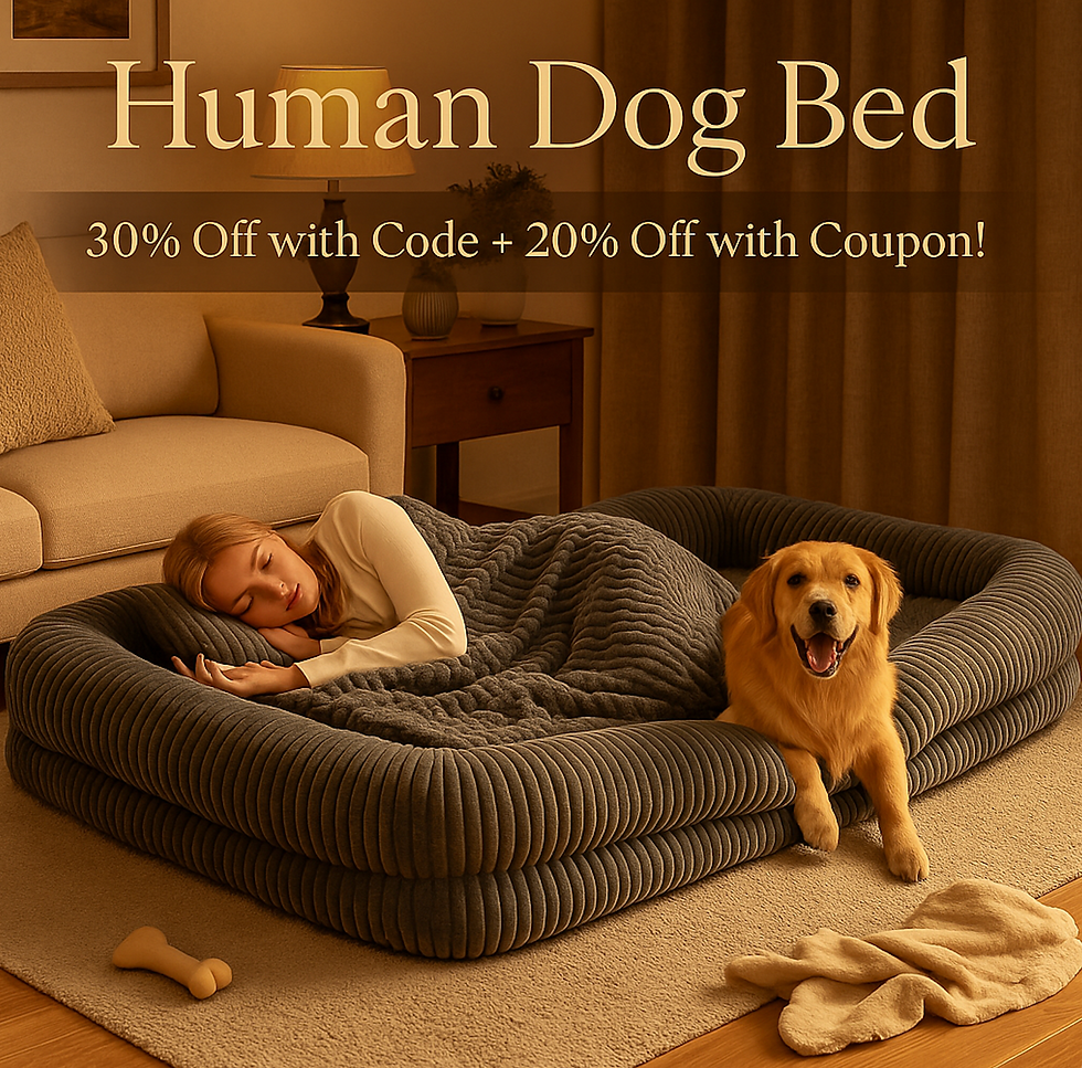 A human sized dog bed with a blanket for 50 perc. off and honestly if you know you know! 🐾 Dropping with Clippable and 7LOIYGIM at check out! ad